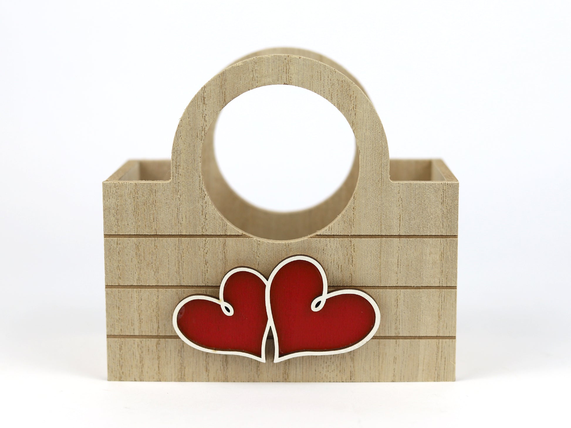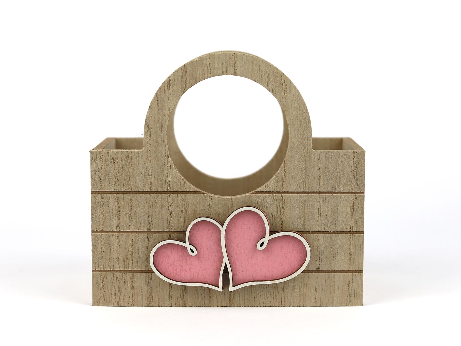 CESTA DE MADEIRA COM CORAÇÕES