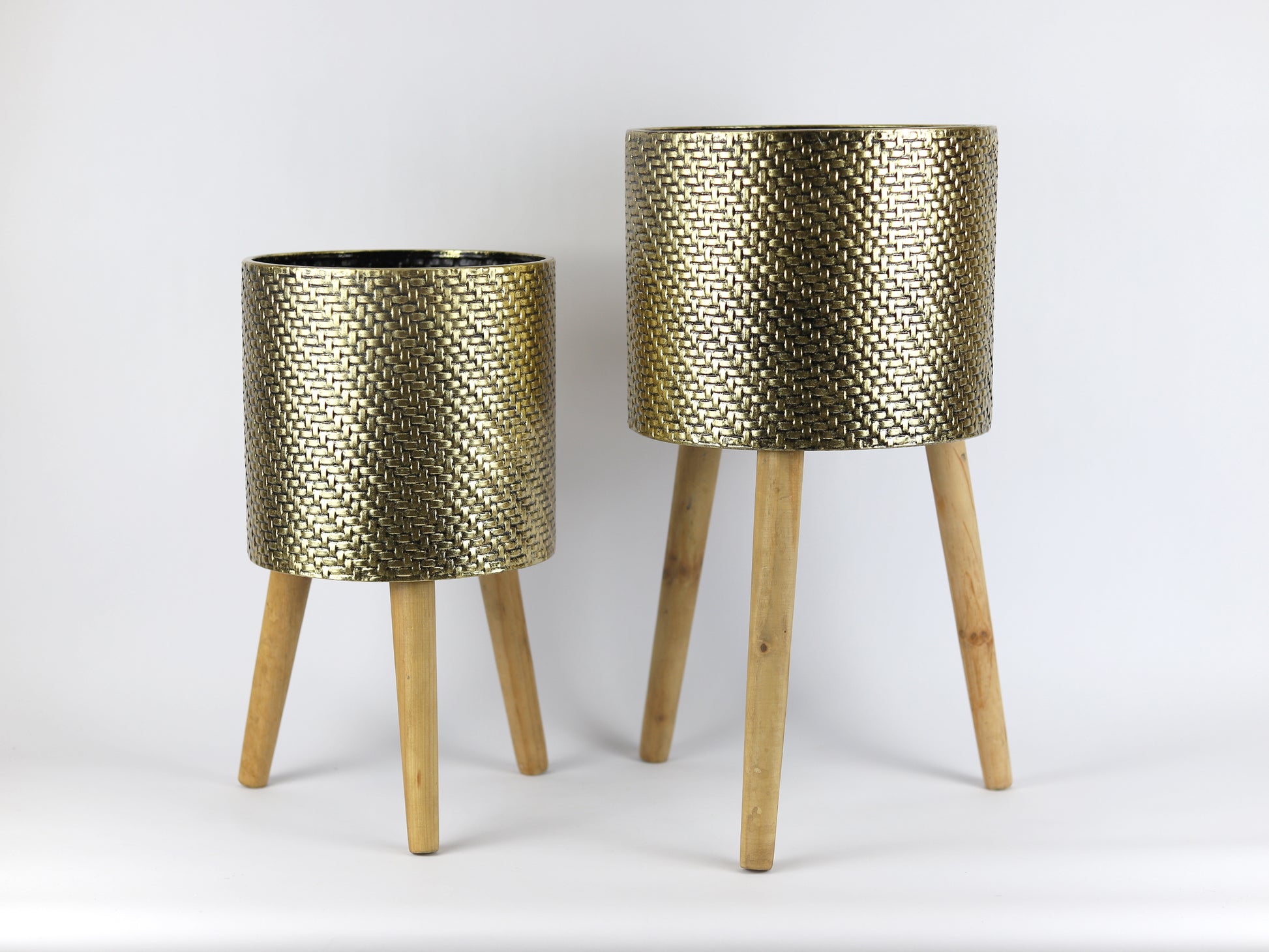 VASO DE METAL COM PÉ DE MADEIRASET DE 2 PEÇAS